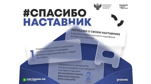 Центр знаний «Машук» запускает Всероссийский марафон «Спасибо, наставник!», приуроченный ко Дню наставника, который в России впервые отметят 2 марта. Все желающие смогут принять в нем участие, рассказав в социальных сетях о своем наставнике. Для участия в марафоне достаточно опубликовать в своих социальных сетях пост со словами благодарности наставнику, а также при желании краткий рассказ о нем и его фотографию.